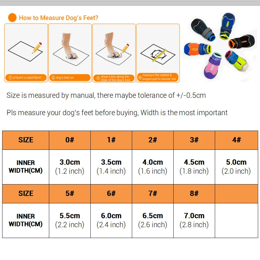Introducing our Premium Boots for Dogs, available in all sizes to provide ultimate protection and comfort for your canine companion. Crafted with high-quality materials, these boots are designed to withstand various terrains and weather conditions while keeping your dog's paws safe from hot pavement, rough terrain, snow, and ice. The boots feature a durable yet flexible sole that provides traction and stability, ensuring your dog maintains their grip during walks or outdoor activities. Each boot is equipped with adjustable straps for a secure fit and reflective accents for visibility in low-light conditions. Whether it's for hiking, running, or simply protecting sensitive paws, our Premium Boots for Dogs are the ideal choice to keep your pet happy, healthy, and active all year round.